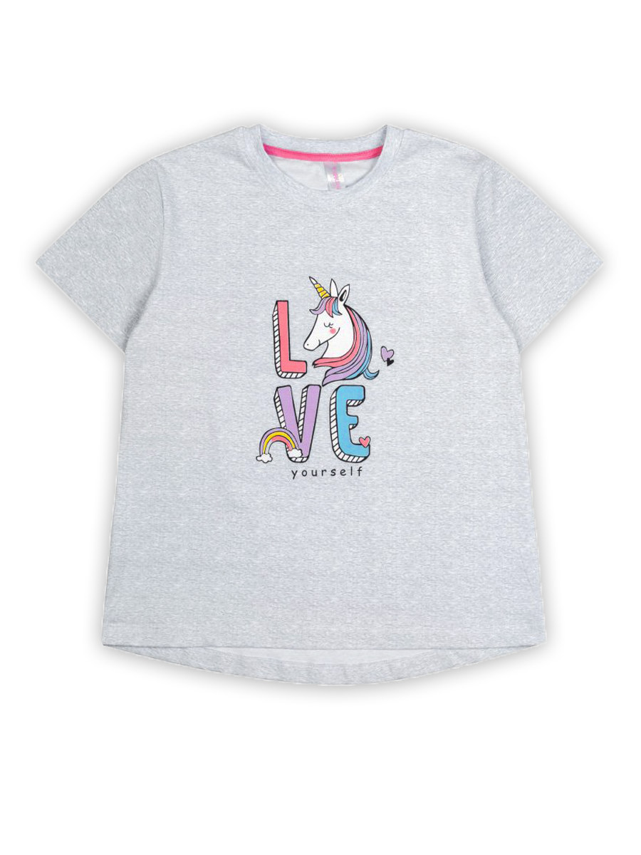 Очаровательная футболка для девочки, изготовленная из хлопка с добавлением лайкры. По вороту - мягкая трикотажная манжета, спинка слега удлиненная. Модель украшает классный принт на полочке.