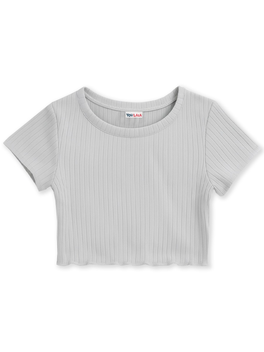 Красивый топ для девочки с коротким рукавом, выполненный из тонкого трикотажа в рубчик - лапши. По вороту - мягкая трикотажная манжета. Изделие хорошо тянется.