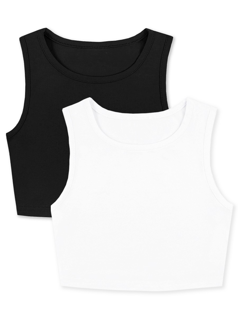 Симпатичный комплект топов для девочки однотонного цвета. Материал изделия - кулирка.