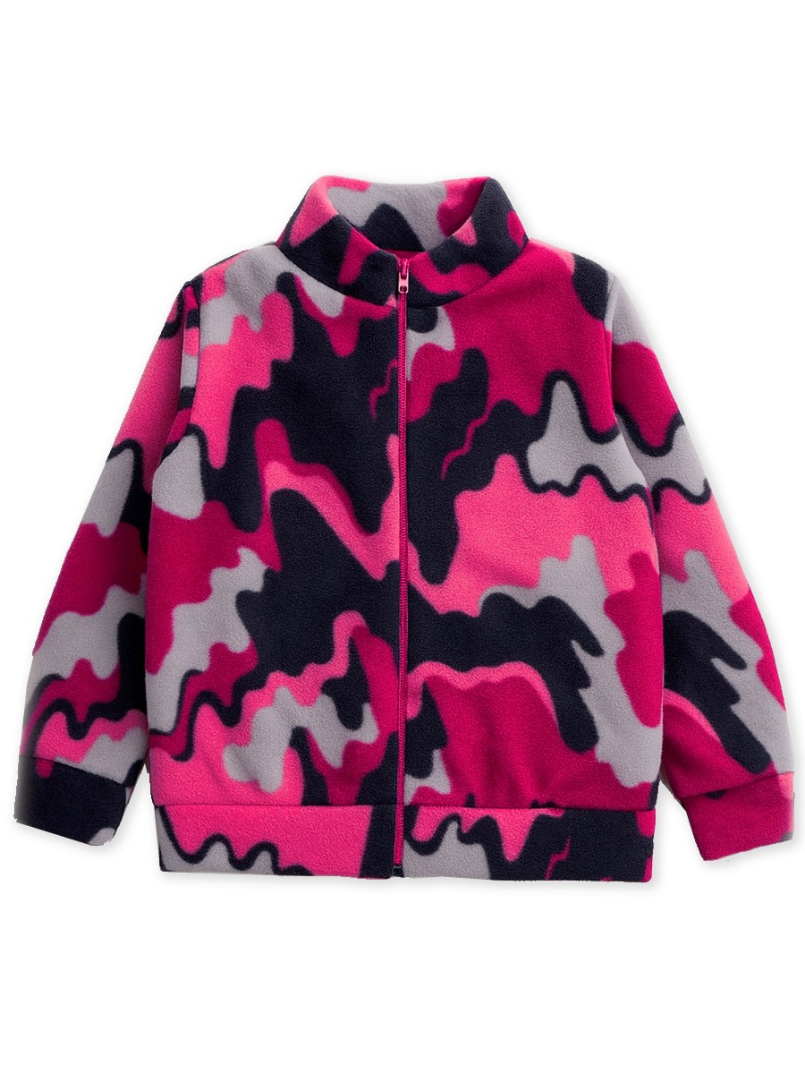 Классная яркая толстовка для девочки из мягкого тёплого флиса. Впереди застегивается на молнию, по вороту, рукавах и по низу изделия - мягкие трикотажные манжеты. Модель украшает красивый набивной рисунок.