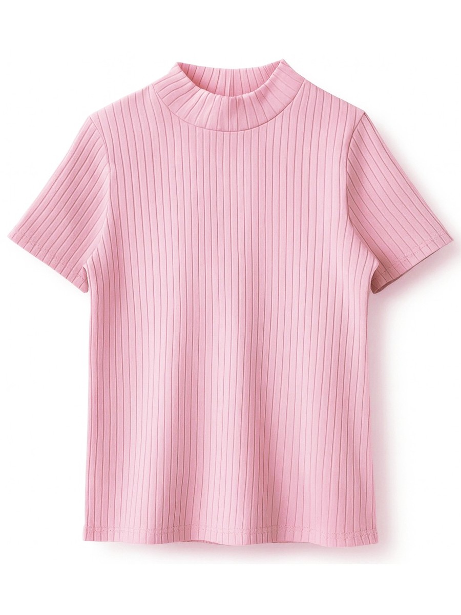 Отличная однотонная водолазка для девочки, изготовленная из ткани - лапши. Воротник-стойка, рукава короткие.
