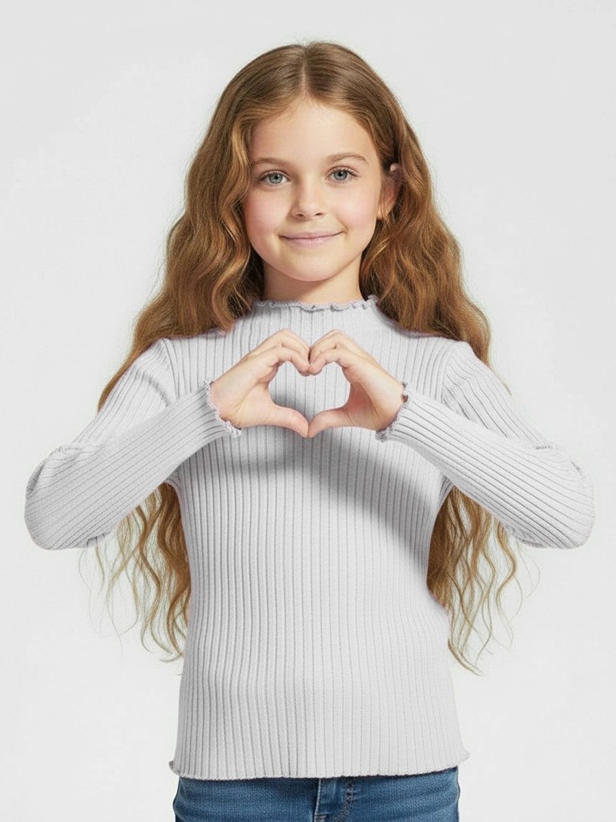 Отличная однотонная водолазка, изготовленная из тонкого материала - лапши. По вороту, рукавах и по низу модели - волнистые края.