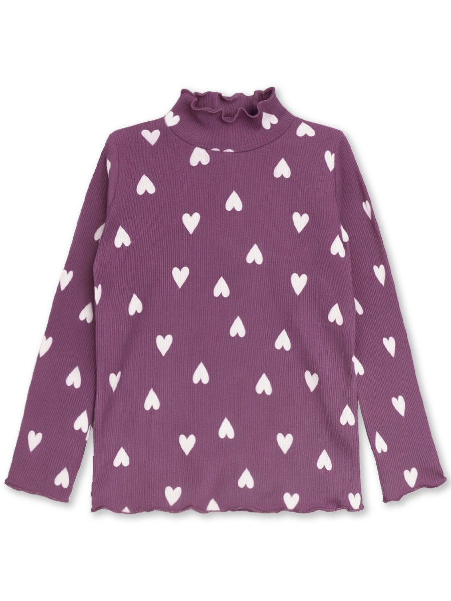Хорошенькая водолазка для девочки с симпатичным набивным рисунком. По вороту, рукавах и по низу изделия - волнистые края. Материал водолазки - кашкорсе, отлично тянется.