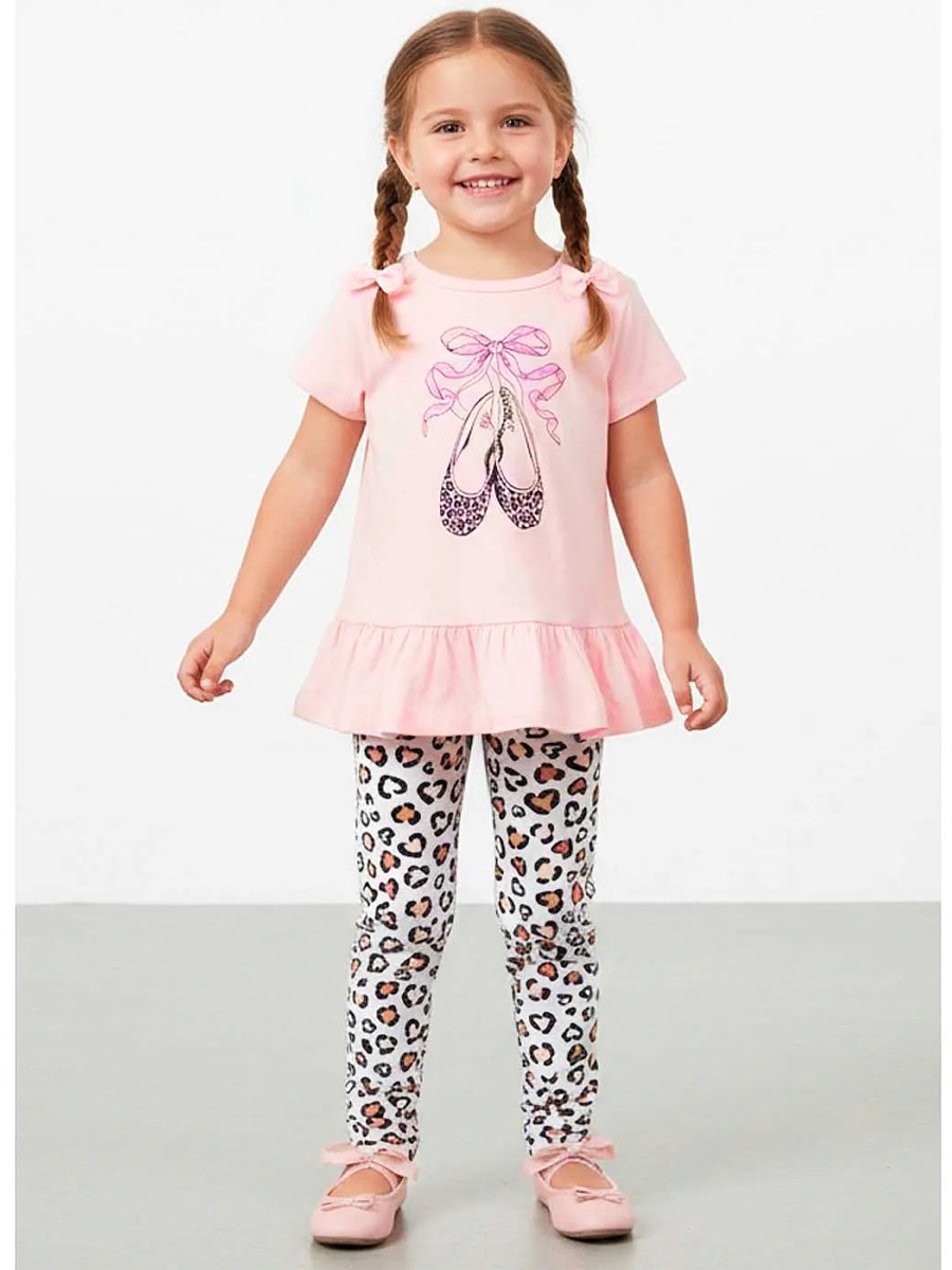 Симпатичный комплект для девочки, состоящий из туники и лосин. Туника на одном плечике застёгивается на кнопочку. По низу изделия имеется широкий волан. Модель украшает чудесный принт на полочке. Лосины на удобной мягкой резинке в красивый набивной рисунок. Комплект выполнен из тонкого эластичного хлопка - кулирки с добавлением полиэстера.