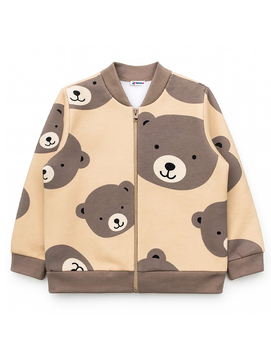 Хорошая толстовка для мальчика, выполненная из плотного хлопкового трикотажа - футера 2-нитки с мягким начёсом внутри. Впереди застёгивается на молнию. По вороту, на рукавах и по низу кофты - мягкие трикотажные манжеты. Модель украшает симпатичный набивной рисунок.