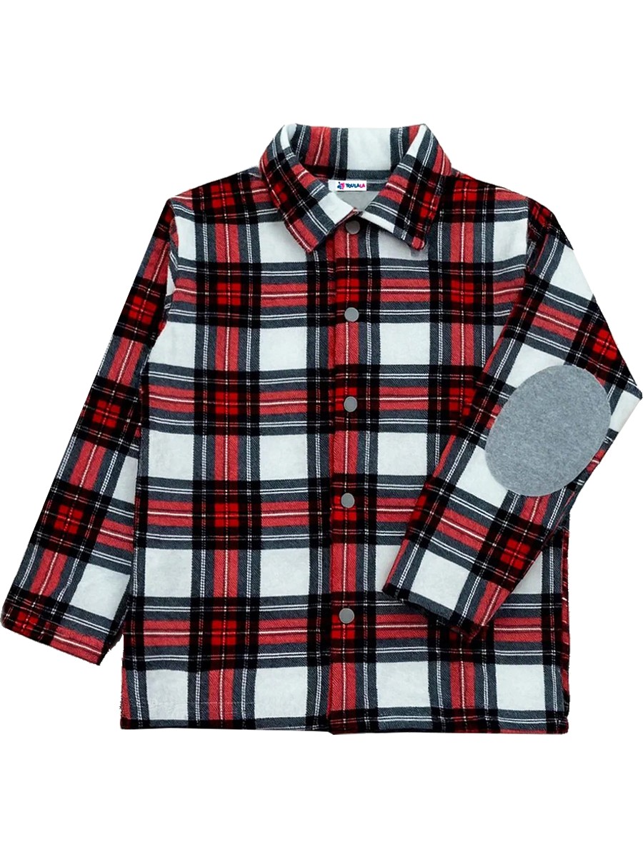 Рубашка для мальчика - Красный; Белый - Клетка - юл0497310315