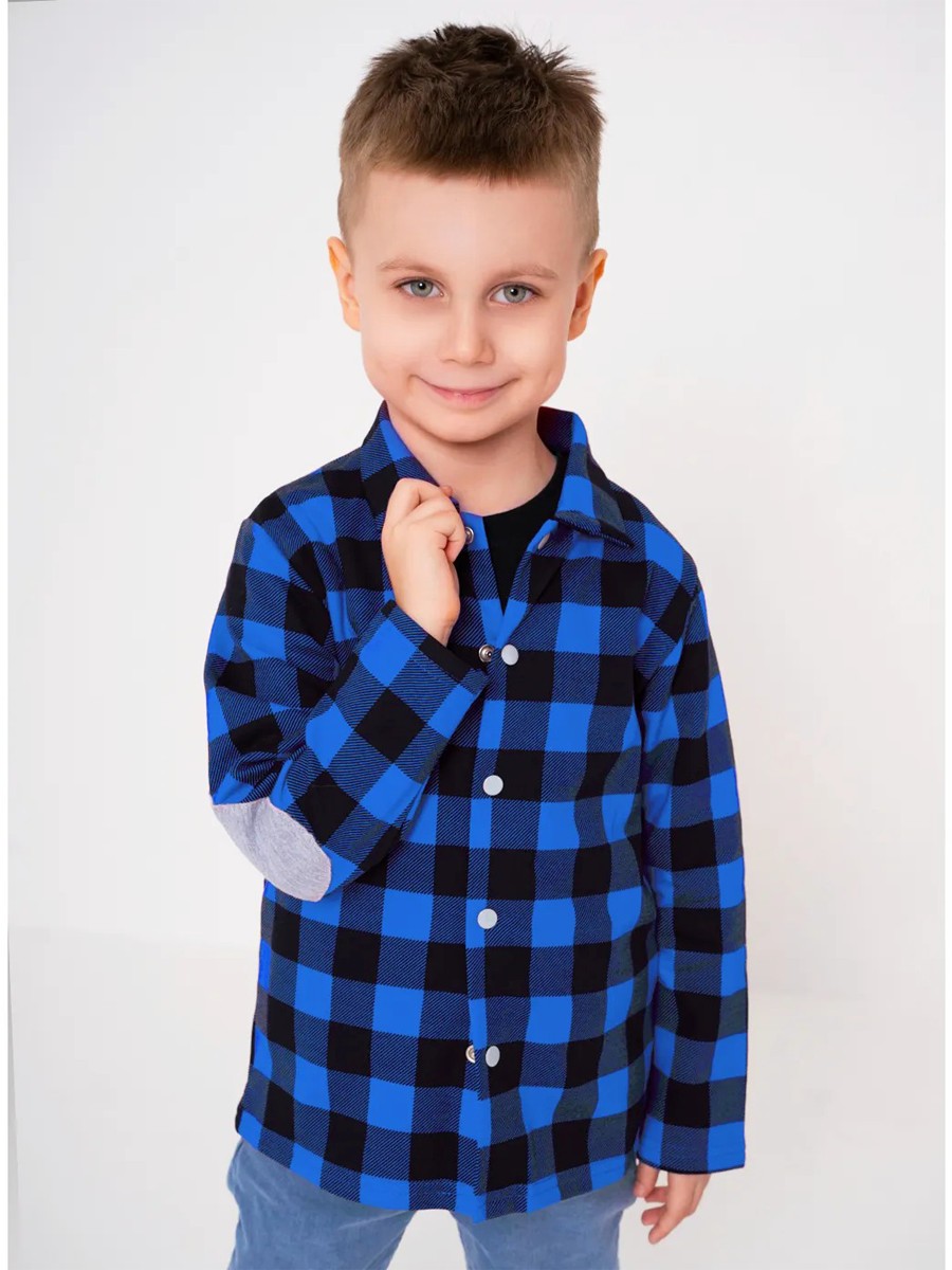 Рубашка для мальчика - Синий; Чёрный - Клетка - юл0497310312