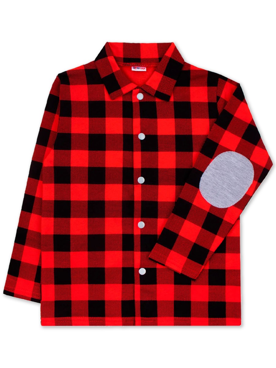 Отличная рубашка с длинным рукавом для мальчика из плотного трикотажа - футера 2-нитки с начёсом. Впереди застегивается на кнопочки. Модель украшают симпатичный набивной рисунок и декоративные вставки на локтях.