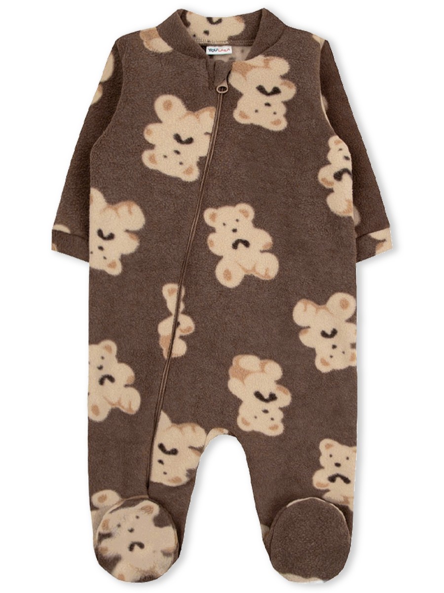 Хорошенький уютный комбинезон для малыша с закрытыми ножками, изготовленный из мягкого флиса. Впереди застегивается на ассиметричную молнию с защитным ярлычком. На рукавах имеются мягкие манжеты. Модель украшает красивый набивной рисунок.