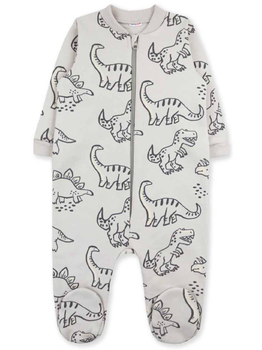 Комфортный тёплый комбинезон с закрытыми ножками, сшитый из 100% хлопка - футера 3-нитки с начёсом. Впереди застегивается на молнию. По вороту и на рукавах имеются мягкие трикотажные манжеты. Модель украшает симпатичный набивной рисунок по всему изделию.