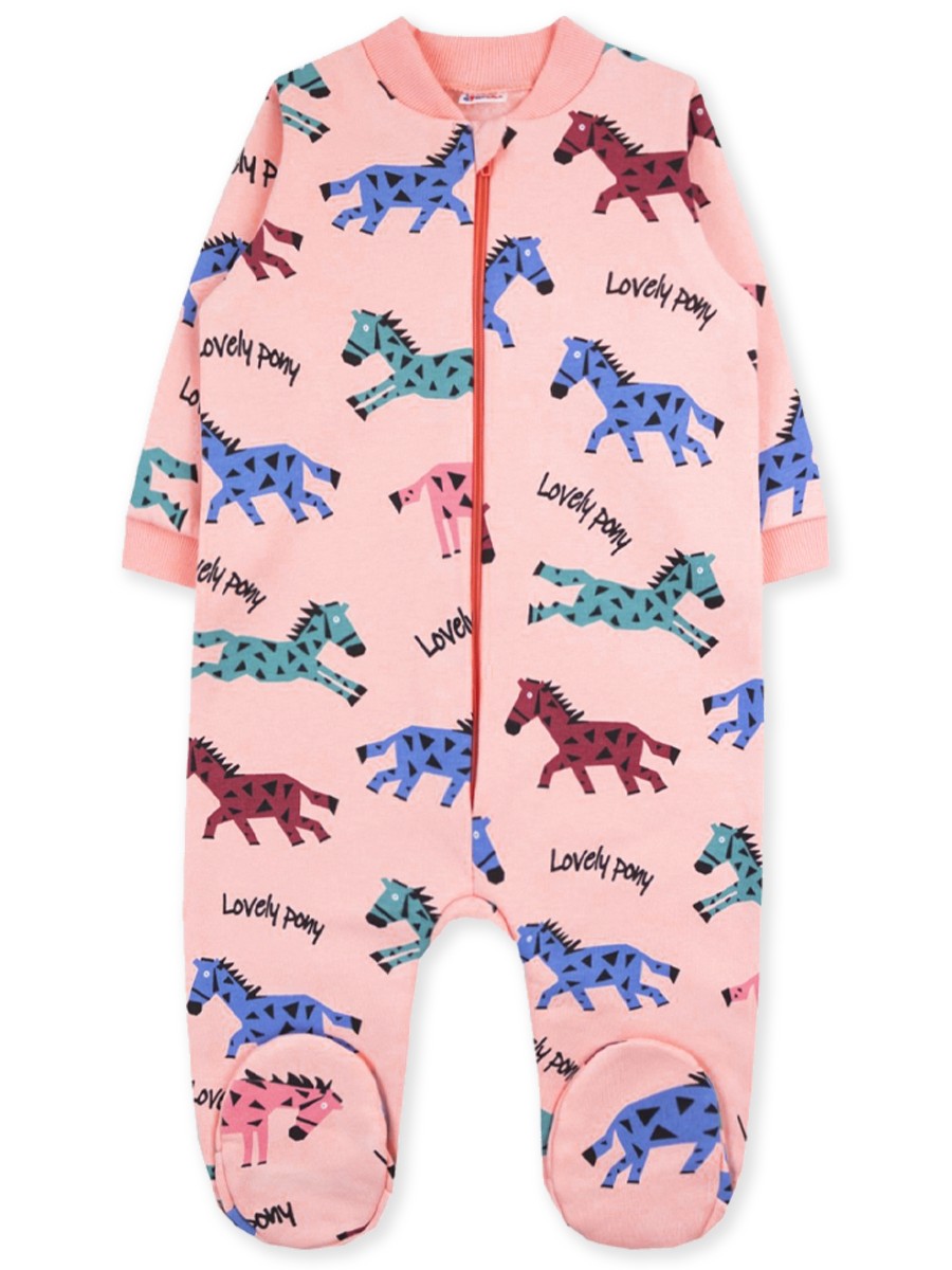 Комбинезон для малыша - Розовый светлый - Лошади - юл1262340608