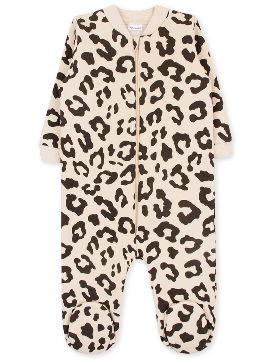 Комфортный тёплый комбинезон с закрытыми ножками, сшитый из 100% хлопка - футера 3-нитки с начёсом. Впереди застегивается на молнию. По вороту и на рукавах имеются мягкие трикотажные манжеты. Модель украшает симпатичный набивной рисунок по всему изделию.