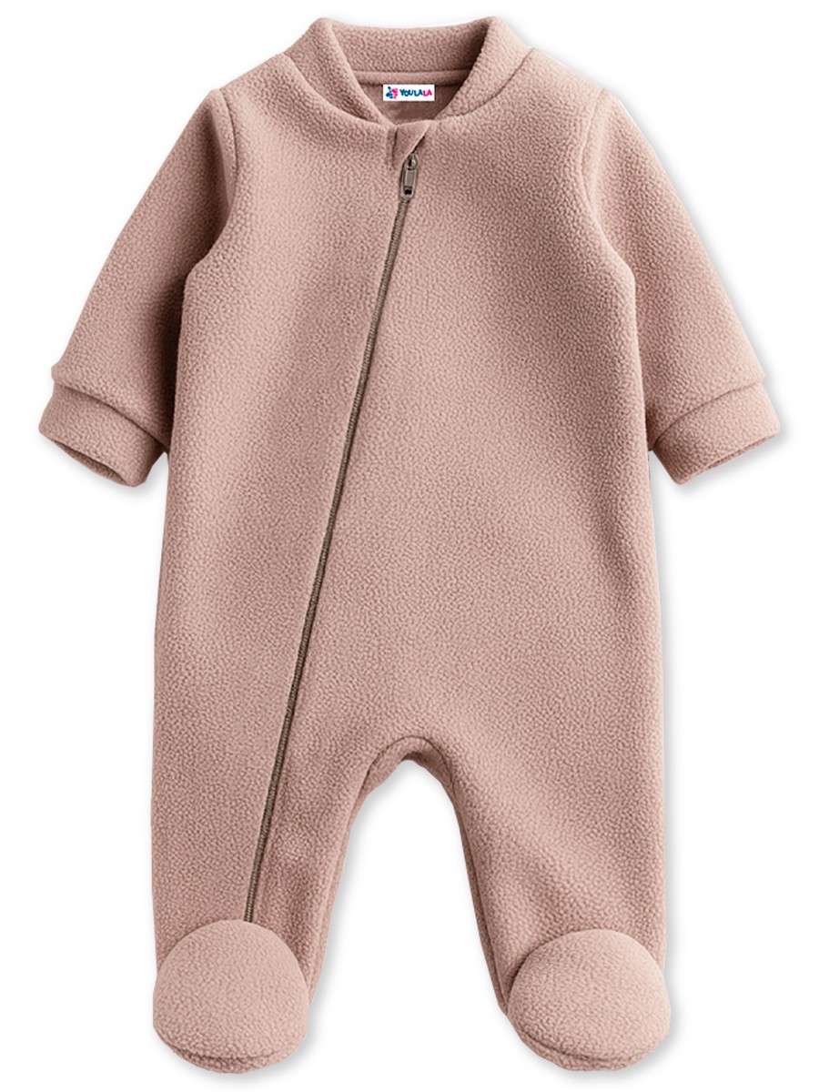 Хорошенький уютный комбинезон для малыша с закрытыми ножками, изготовленный из мягкого флиса. Впереди застегивается на ассиметричную молнию с защитным ярлычком. На рукавах имеются мягкие манжеты. Модель украшает красивый набивной рисунок.