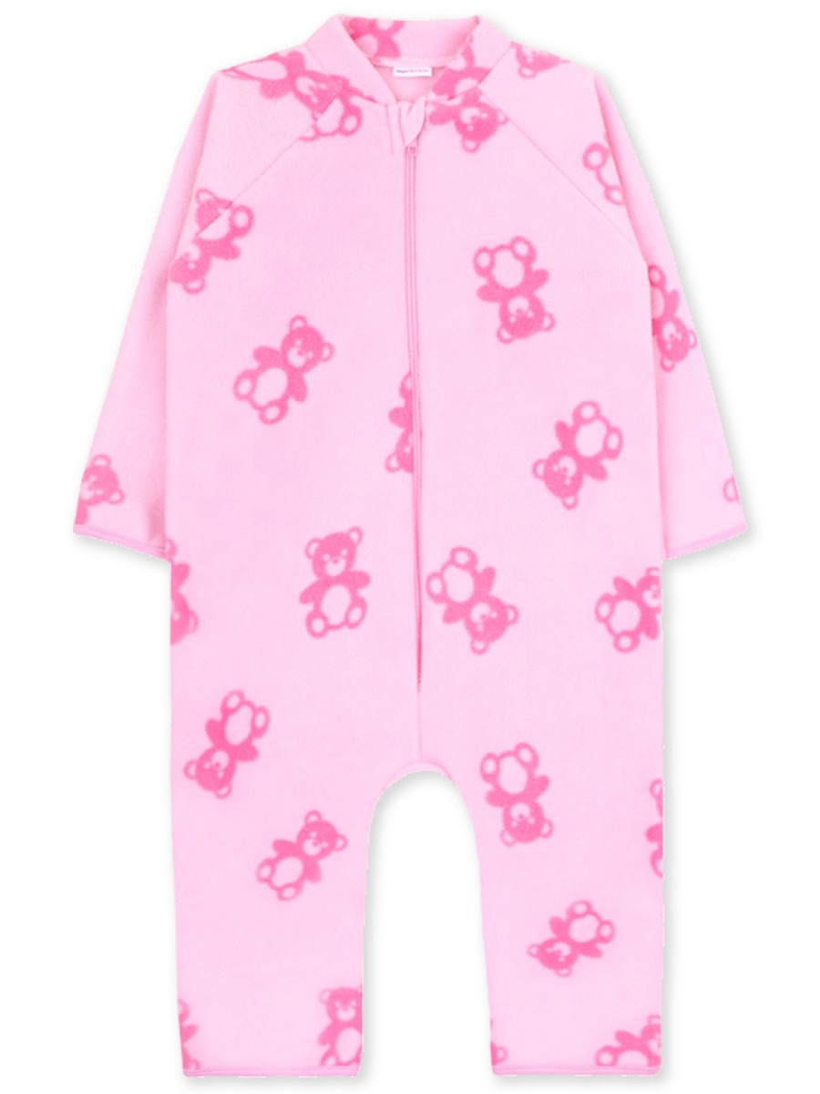 Замечательный комбинезон изготовленный из мягкого нежного флиса. Спереди застёгивается на молнию с защитным ярлычком, ножки открытые. Модель украшает симпатичный набивной рисунок по всему изделию.